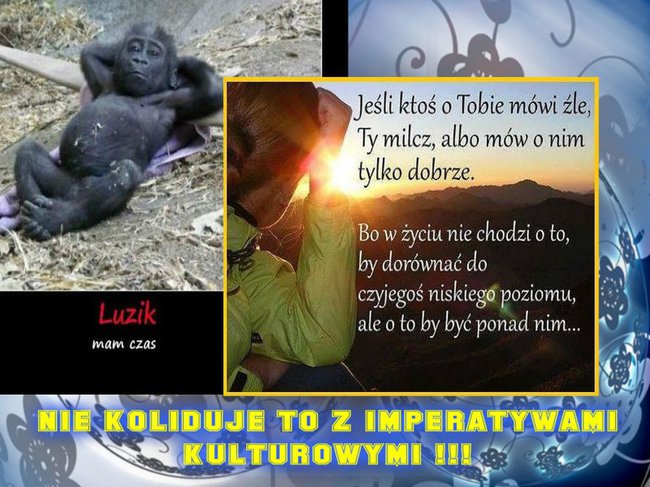 WITAM EŻLUNIU! A TO DOBRE, CO PISZE "hanula25". WIĘCEJ RÓBCIE TAKICH SLAJDZIKÓW, BO NIC NIE DOCIERA DO ZAKAPIORÓW. A TWÓJ SLAJDZIK TO WIELKA SZTUKA PRZEMAWIANIA DO INTELIGENTNYCH ODBIORCÓW I PRAWDZIWA KLASA, KTÓREJ BRAKUJE TYM, CO WAS OCENIAJĄ ORAZ ADMINISTRACJI. TO CZEMU REGULAMIN NIE POZWALA BLOKOWAĆ TYCH, KTÓRYCH NIE CHCECIE "GOŚCIĆ"? KTÓRYCH WYRZUCA SIĘ DRZWIAMI, A ONI PCHAJĄ SIĘ OKNEM? TO NIECH KAŻDY Z MARSZU WIE KTO GO CZĘSTUJE JEDYNKAMI I NIECH TAKIEGO SOBIE ZABLOKUJE. BYŁBY SPOKÓJ, A PORTAL GDZIE SIĘ DZIEJĄ TAKIE "JAJA" JEST POD ZDECHŁYM PSEM. POZDROWIONKA I CAŁUSKI ELŻBIETKO. DAŁAŚ POKAZ DOBRYCH MANIER, ALE Z CHAMSTWEM TRZEBA OBEJŚĆ SIĘ PO CHAMSKU.