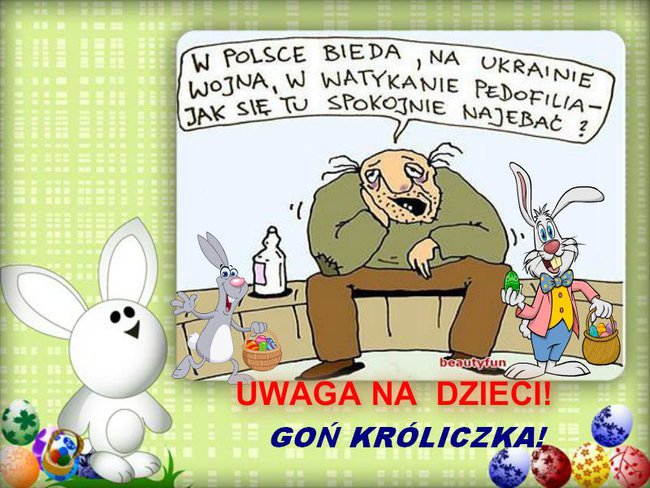 BARDZO ŁADNY SLAJDZIK. TYLKO INTELIGENTNY GO ZROZUMIE. SUPER. BRAWO. POZDRAWIAM I 55555 ZOSTAWIAM I ŻYCZĘ CUDOWNYCH DNI ORAZ SPOKOJNEGO PRZYGOTOWYWANIA SIĘ DO ŚWIĄT WIELKANOCNYCH, A GDY JUŻ NADEJDĄ TO ŻYCZĘ ABY UPŁYNĘŁY W MIŁEJ ATMOSFERZE , ŻYCZĘ CUDOWNEGO ZAJĄCZKA I MOKREGO DYNGUSA, JA NIE LUBIĘ LANEGO PONIEDZIAŁKU, ALE SPĘDŹCIE GO W CUDOWNEJ RADOSNEJ GROMADCE. BUZIACZKI ZOSTAWIAM I DO MIŁEGO. H.M.M. CUDOWNEGO WEEKENDU ŻYCZĘ SERCEM...