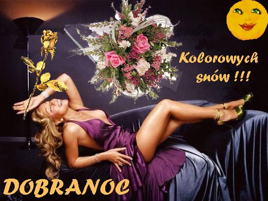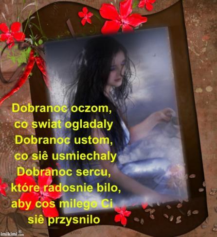 Ciemna nocka juz nastała, niech Cie do snu ukołysze. Zaśnij już, słonko śpij, życzę Tobie kolorowych snów, pięknych bajek na dobranoc, co dzień nowych przygód. Księzyc oczkiem mruga a gwiazdeczki nucą piosenki swe. A ja na dobranoc chcę zostawić Ci uśmiech, by nie znikał z Twej twarzy.